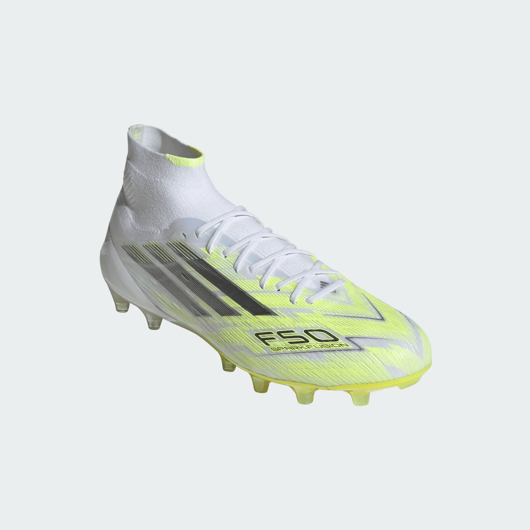 Unleash your potential with the F50 SPARKFUSION ELITE Mid Cut Firm Ground / Artificial Ground Football Boots, designed for women who seek performance and comfort. The engineered Primeknit collar offers a supportive fit, while the Fusionlast provides a tailored fit for the female foot. Sprintframe Fusion technology supports quick turns, and semiconical studs offer optimal traction on both natural and artificial grass. With a Fibertouch upper, these boots deliver lightweight support and cushioning.